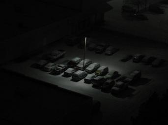 Keywords: Streetlights.JPG A photo of a light in a dark snowy night Own Marlith Darkness Vehicles in snow Car parks Street lights