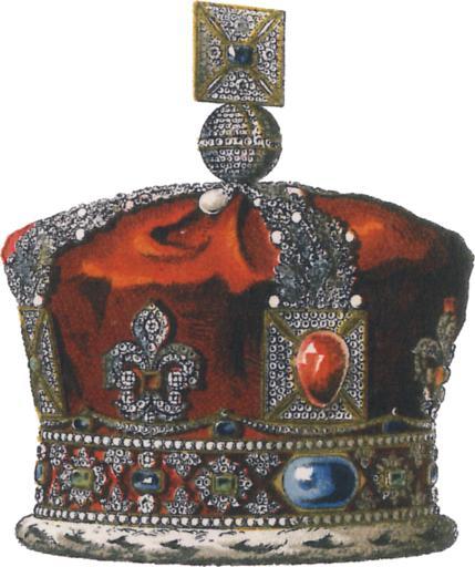 | Keywords: Ströhl-Regentenkronen-Fig. 11.png Fig 11 Staatskrone der Königin Victoria Dieselbe wurde im Jahre 1838 von Mr Rundell zu Bridge angefertigt und ist mit 3093 Juwelen geschmückt darunter der beühmte Rubin der dem Prinzen Eduard von Wales genannt der schwarze Prinz von Don Petro König von Kastilien gegeben worden sein soll Als Modell diente die Krone König Karls II ¦ Imperial State Crown of the United Kingdom Hugo Gerard Ströhl Heraldischer Atlas Stuttgart 1899 03 02 2009 Creator Hugo Gerhard Ströhl Hochgeladen von David Liuzzo Coat of Arms PD-old-auto 1919 State crown of Queen Victoria Heraldic crowns by Hugo Gerhard Ströhl Rundell Bridge |