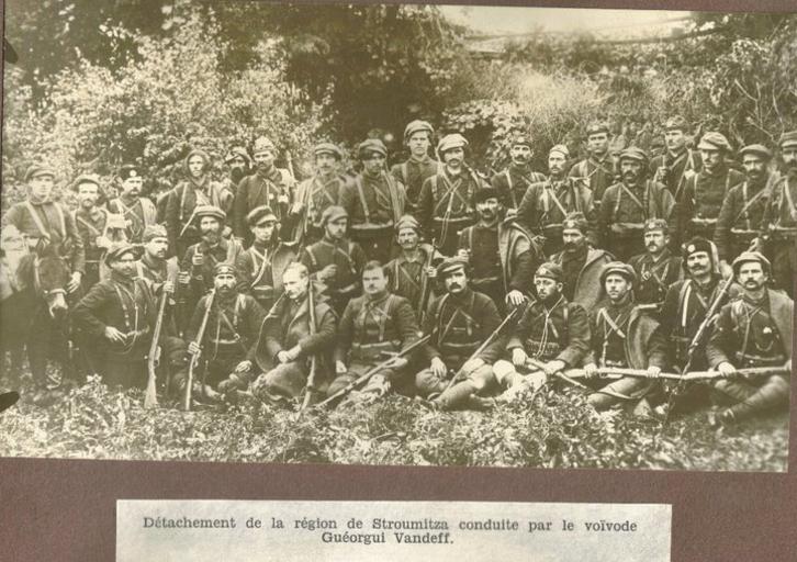 | Keywords: Strumica cheta Georgi Vyndev Milan Postolarski.JPG en Cheta of Strumica voevodas Georgi Vyndev and Milan Postolarski bg Четата на Ст ушишките войводи Гео ги Въндев и илан Постола ски Almanach Macedonia Author 1920 File BASA_1942K-1-62-11_Georgi_Vandev Milan_Postolarski jpg PD-old Yosif Kirov Georgi Vandev Milan Postolarski |
