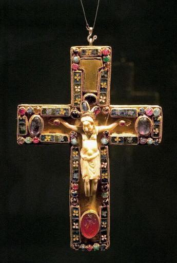 | Keywords: StServatius-Treasury5.jpg en The so-called pectoral cross of Saint Servatius in the church treasury of the Basilica of Saint Servatius Maastricht Netherlands Front gold on wood with cloisonné enamel plaques a Roman gem and precious stones around an ivory corpus Trier ±1039 probably a gift from emperor Henry III own Kleon3 Servatiana in the Treasury of Sint-Servaasbasiliek 11th-century sculptures in the Netherlands Crucifixion in jewellery 11th-century ivory Cloisonné of Europe Reliquaries of the True Cross 11th-century metalwork Crosses in jewellery |