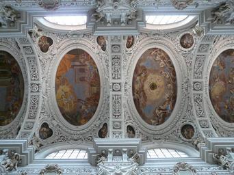 Keywords: stucco ceiling blanket frescoes ceiling paintings ceiling frescoes dom st stephan passau baroque bishop church church episcopal see passauer stephansdom st stephan's cathedral dome painting
