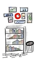 Keywords: study room books room wall pictures book shelf shelf bookcase trash can clock knowledge study bookshelf wisdom shelves dust bin interior photos sketch doodle
