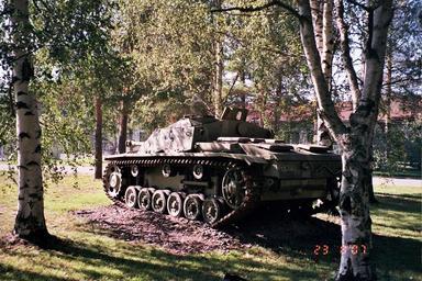 | Keywords: StuG3 assault gun in Oulu 2007 c.jpg en A StuG III assault gun model Ausf G MIAG-built in the former barracks area of the now disbanded Pohja Brigade in the Hiukkavaara district of Oulu Finland 2007 fi StuG III -rynnäkkötykki Ausf G valmistaja MIAG Pohjan Prikaatin entisellä kasarmialueella Oulun Hiukkavaarassa Own 2007-08 Methem Mikko J Putkonen Sturmgeschütz III Ausführung G in the Pohja Brigade barracks 2007 in Oulu August 2007 in Finland | ||||