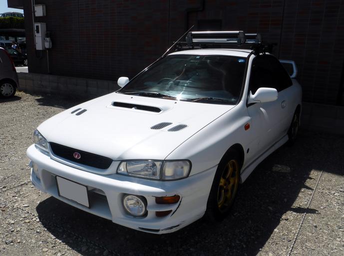 Keywords: Subaru IMPREZA WRX Type R STi Version (GC8) front.JPG ja GC8型スバル・インプレッサWRXタイプR STiバージョンをフロントから撮影 2014-09-14 11 57 30 own Tokumeigakarinoaoshima 100px cc-zero Uploaded with UploadWizard Subaru Impreza WRX STI GM White coupes