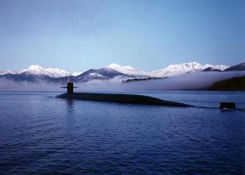 Keywords: submarine us navy uss kentucky cruising surface mountains