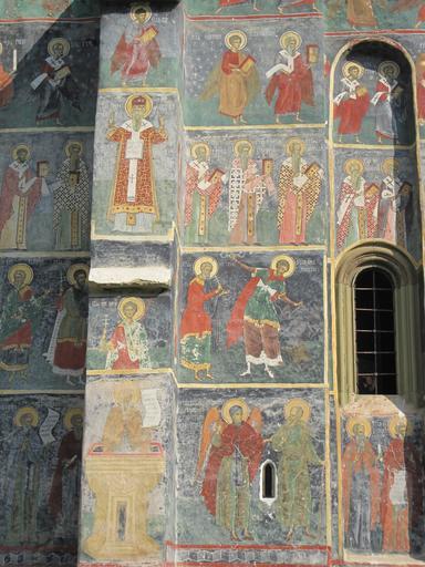 Keywords: Sucevita murals 2010 23.jpg Suceviţa Monastery Romania The church is one of the Painted churches of northern Moldavia listed in UNESCO's list of World Heritage sites own photo 14 d'Août 2010 Man vyi Own work all rights released Public domain Suceviţa murals Murals and icons on the exterior of churches Windows in Romania |