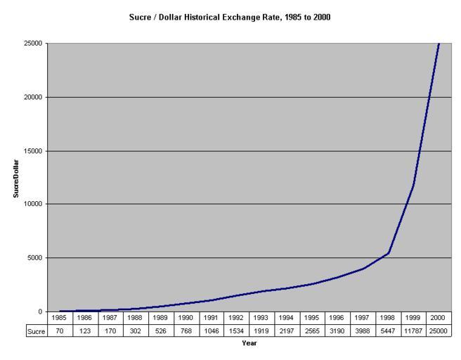 Keywords: Sucre+Dollar+Historical+Exchange+Rate+1985+2000.png Historical exchange rates between the ecuadorian Sucre ECS and the US-Dollar USD Based on CIA World Factbook 1990 2002 2006-07-17 Ma_xyz Public Domain Money of Ecuador United States dollar exchange rate charts |