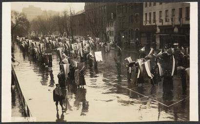 | Keywords: Suffragists marching in rainy street 159043v.jpg  Summary Photograph of suffragists marching with banners in city street in rain 1 photograph print 4 25 x 7 in accession number Call Number Location National Woman's Party Records Group I Container I 159 Folder Grand Picket March 4 1917 Source Collection Records of the National Woman's Party institution Library of Congress Manuscript Division http //hdl loc gov/loc mss/mnwp 159043 PD-1923 PD-Harris-Ewing suffragettes March 1917 in Washington D C Demonstrations and protests in Washington D C |