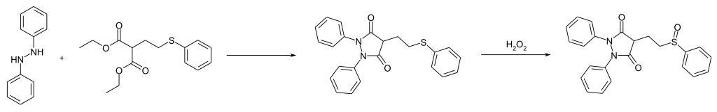 Keywords: Sulfinpyrazone synthesis 01.svg en Synthesis of Sulfinpyrazone de Synthese von Sulfinpyrazon own Steffen 962 2013-03-25 PD-chem Antigout agents Drug syntheses Cc-zero