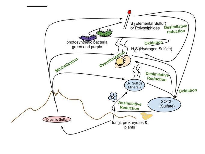 Keywords: Sulfur cycle - English.jpg en The sulfur cycle 2012-03-19 own Pashute It would be nice if someone made a better diagram cc-zero Uploaded with UploadWizard Sulfur_cycle