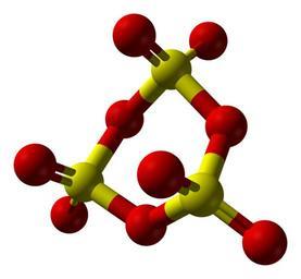 | Keywords: Sulfur-trioxide-trimer-from-xtal-1967-3D-balls-A.png Ball-and-stick model of the sulfur trioxide trimer SO<sub>3</sub> <sub>3</sub> i e S<sub>3</sub>O<sub>9</sub> from the crystal structure X-ray crystallographic data from http //dx doi org/10 1107/S0365110X6700009X Acta Cryst 1967 22 48-51 Model constructed in http //www crystalmaker com/ CrystalMaker 8 1 Image generated in http //accelrys com/products/discovery-studio/visualization/discovery-studio-visualizer html Accelrys DS Visualizer Own 2009-05-26 Ben Mills Benjah-bmm27 Images by Ben Mills Sulfur trioxide Trimers Six-membered rings Cyclic inorganic compounds |