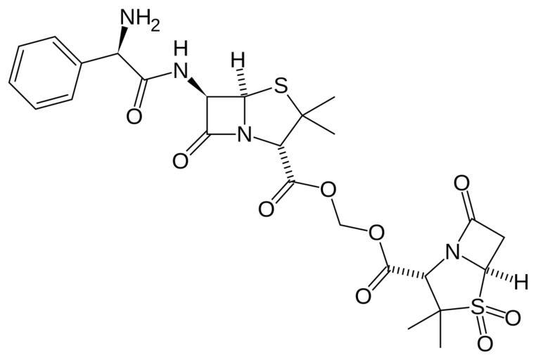 | Keywords: Sultamicillin.svg Skeletal formula of sultamicillin ester form of ampicillin/sulbactam Created using http //www acdlabs com/download/chemsk html ACD/ChemSketch 8 0 and http //www inkscape org Inkscape Own 2007-05-04 Fvasconcellos 16 50 4 May 2007 UTC Carboxylate esters Penicillin antibiotics |