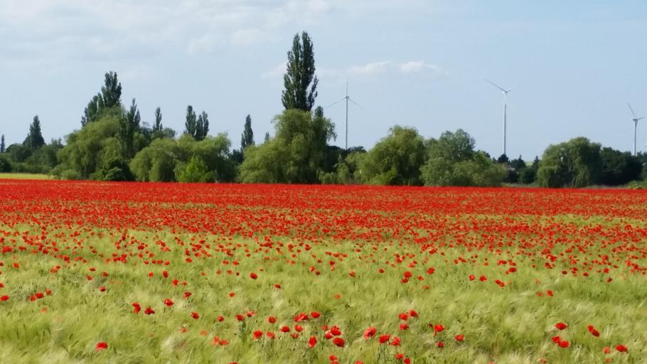 Keywords: summer klatschmohn poppy poppy flower flower blossom bloom red field bloom red poppy landscape field flower red sea blütenmeer