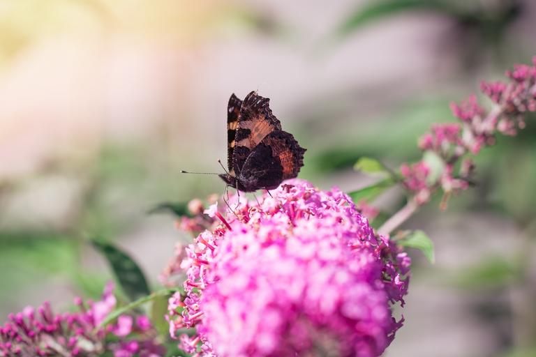 Keywords: summer lilac summer lilac blossom bloom pink pink flower nature wild life butterfly edelfalter garden in the garden flower garden garden plant insect flight insect animal landed arrived little fox aglais urticae close