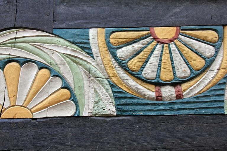 Keywords: sun building truss home fachwerkhaus carving decor colorful color bar