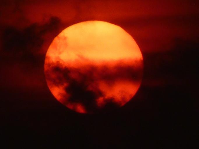 Keywords: sun fireball glow mood sunset back light heat embers abendstimmung clouds overcast mystical gloomy mysterious