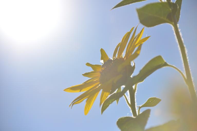 Keywords: sun flower flowers summer nature flora yellow blossom bloom sunny sky plant public record yellow flower garden back light sunshine