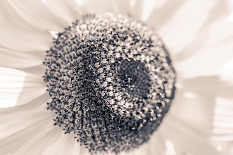 Keywords: sun flower helianthus annuus blossom bloom close macro black and white monochrome sw black and white photo retro look