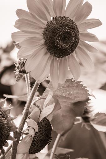 Keywords: sun flower helianthus annuus blossom bloom close macro sepia