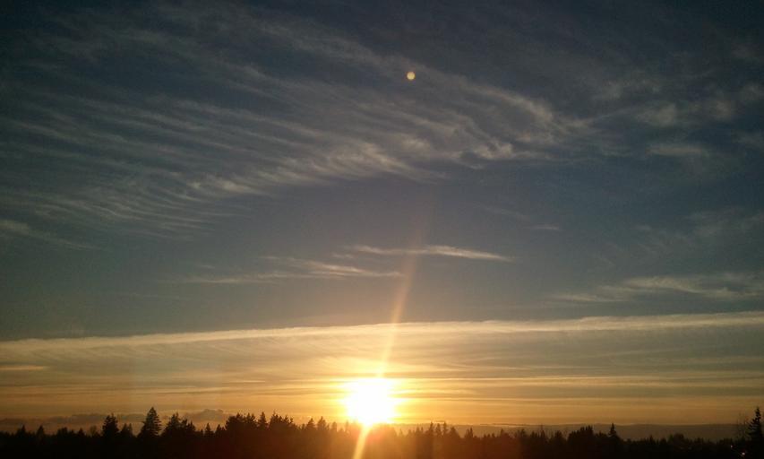 Keywords: sun shining star sunlight golden yellow rays glowing glows bright shines sunset sunrise dawn dusk morning evening day cloudy sky blue horizon trees plants silhouette scenic scenery landscape nature