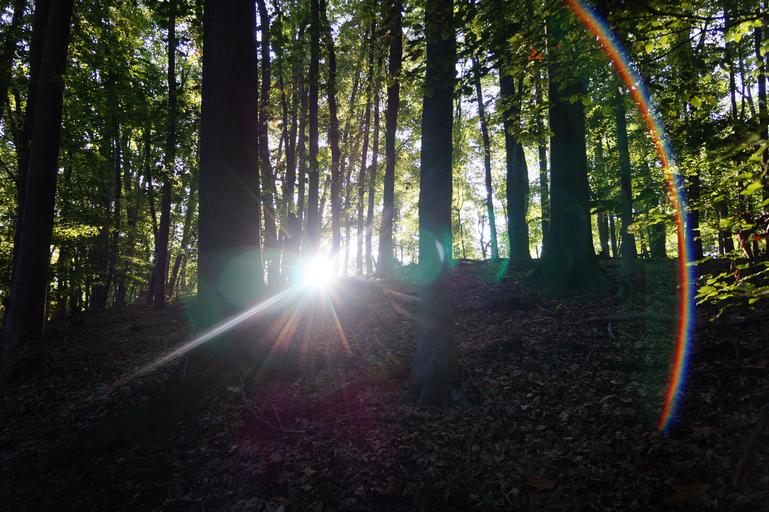 Keywords: sun sunbeam aperture stain scattering reflections back light lens light reflection rays nature forest trees