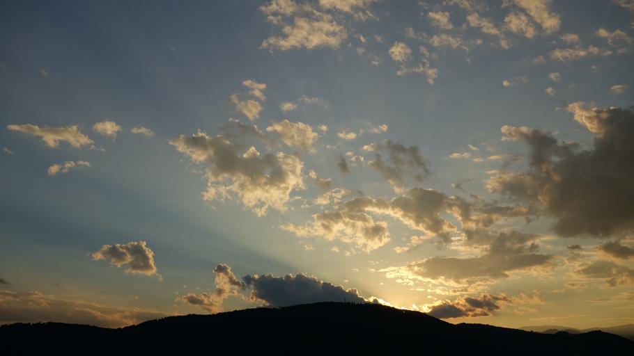 Keywords: sunbeam clouds sunset rays sky mood evening abendstimmung