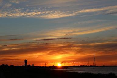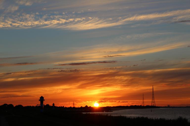 Keywords: sunbeam dusk sunset sun abendstimmung twilight romance mood nature sea landscape atmosphere evening sky elbe