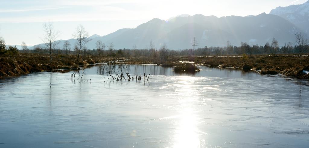 Keywords: sunbeam landscape lake mountains chiemgau sunlight autumn mood morgenstimmung atmosphere bright rays sun sky nature cold