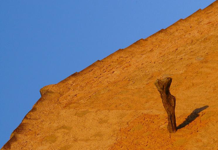 Keywords: sundial sun hispanic facade housewife hauswand time of contrasts ocher blue sky south mallorca wood pile sunlight shadow light and lichtspiel roof tile roofing tiles building house roof intense colours