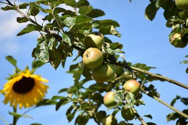 Keywords: sunflower apples apple tree fruit summer time flower