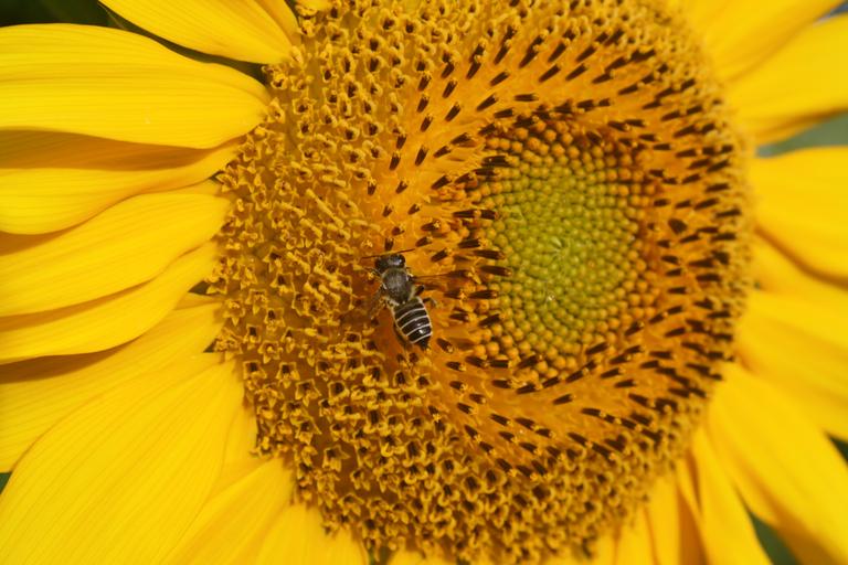 Keywords: sunflower bee golden color honey sun yellow colorful outdoors