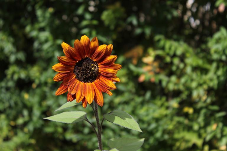 Keywords: sunflower bee orange single flower leaf nature summer insect plant sunny life garden day