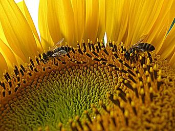 Keywords: sunflower bees agriculture flower nature rural color sun honey yellow plants