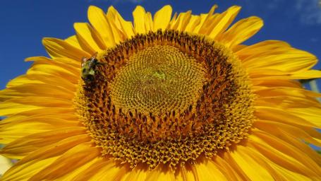 Keywords: sunflower blue sky closeup