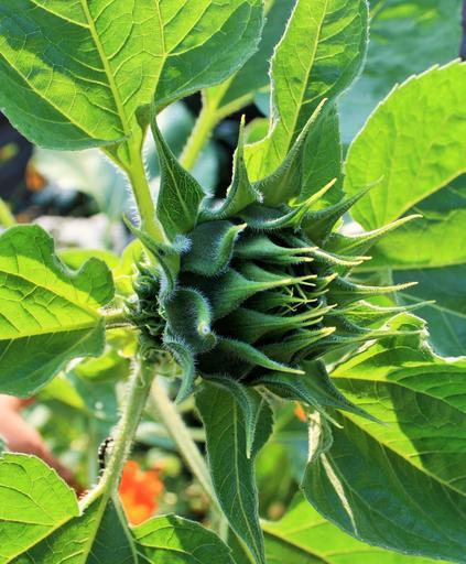 Keywords: sunflower bud flower sunflower bud green opening leaves light