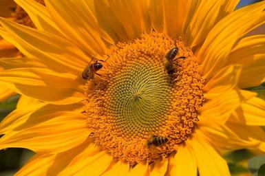 Keywords: sunflower flower yellow the bees insect seeds pollen center target summer