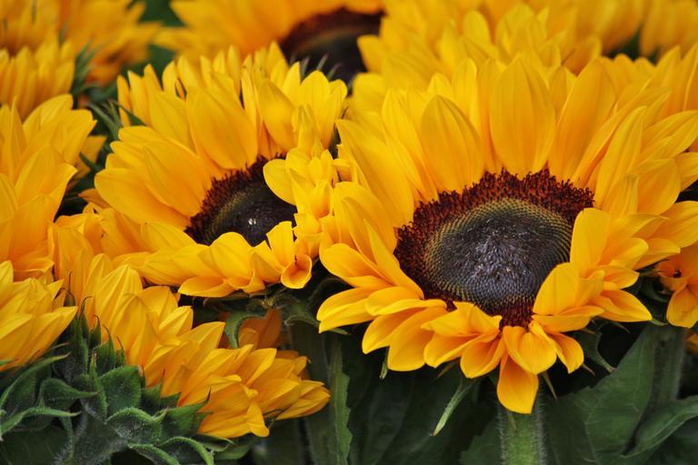 Keywords: sunflower flowers blossom bloom yellow plant summer flora close bright colorful petals decorative nature lush decoration