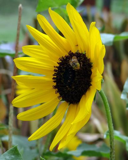 Keywords: sunflower ornamental bee macro close-up flower yellow noida india