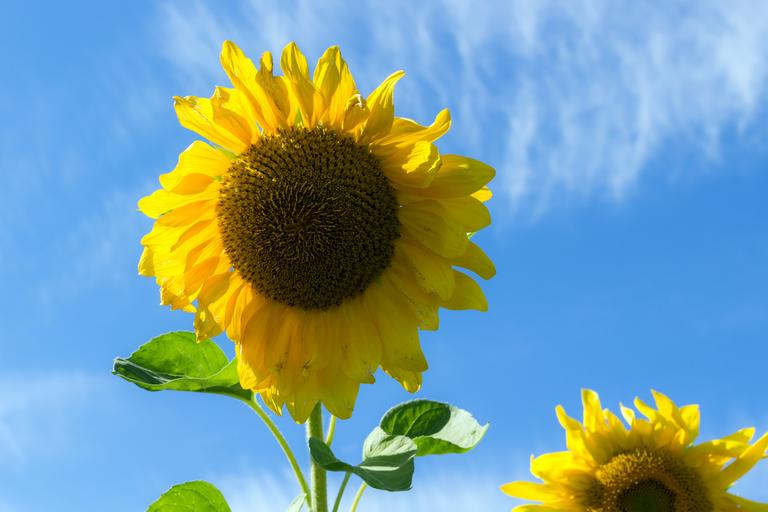 Keywords: sunflower summer sky plant closeup bright flower nature dacha vegetable garden yellow greens farming agriculture outdoors elitexpo green