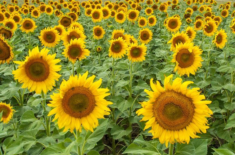 Keywords: sunflower sunflower field yellow field flower plant green rural agriculture landscape