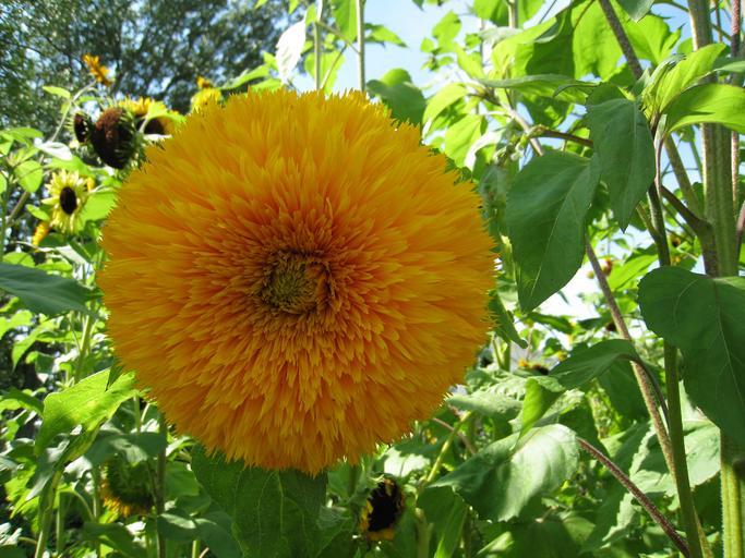 Keywords: sunflower teddybear yellow summer green leaf garden