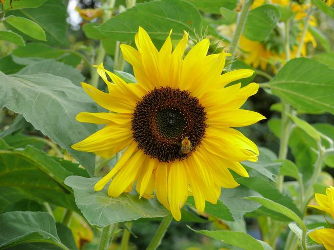 Keywords: sunflower yellow bloom in bloom bee nectar collector nature spring summer garden
