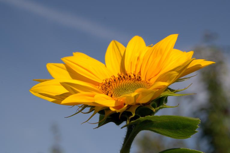 Keywords: sunflower yellow garden flower flowering sunflower petals sky blue the sun sunny summer maturation plant mature bloom