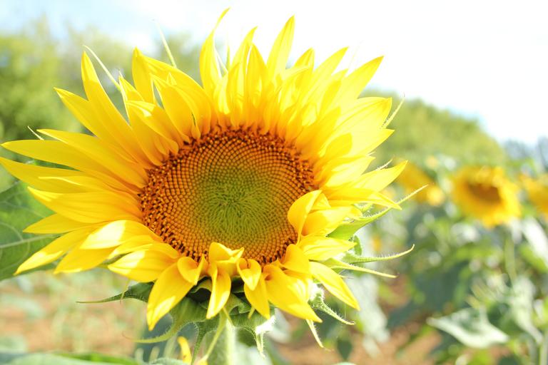 Keywords: sunflower yellow summer sky agriculture nature flower blossom bright natural colorful flora leaves botany blooms rural plant outdoor field