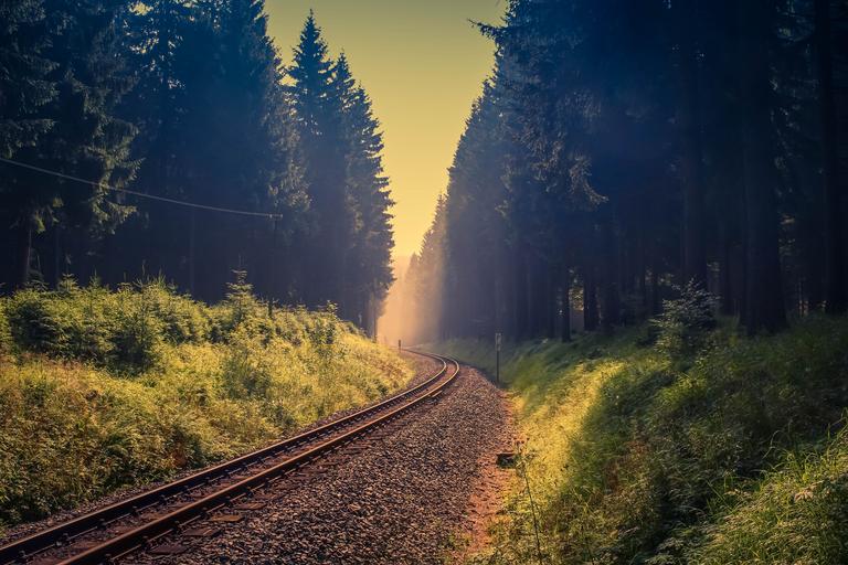 Keywords: sunrise forest fog romance nature sun trees track