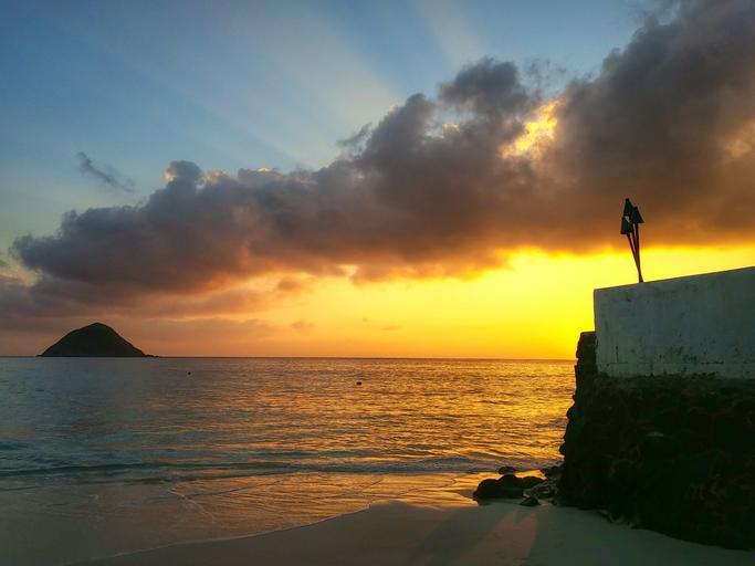 Keywords: sunrise hawaii island ocean sky summer sun cloud shore paradise sea tropical