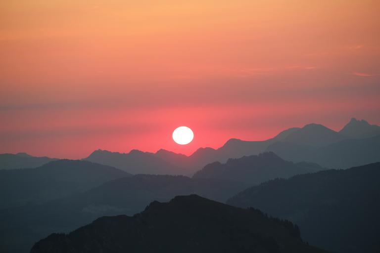 Keywords: sunrise morgenrot sun light landscape skyline horizon mountains sky kanisfluh bregenzerwald vorarlberg nice weather alpine summer holiday panoramic views alpine panorama
