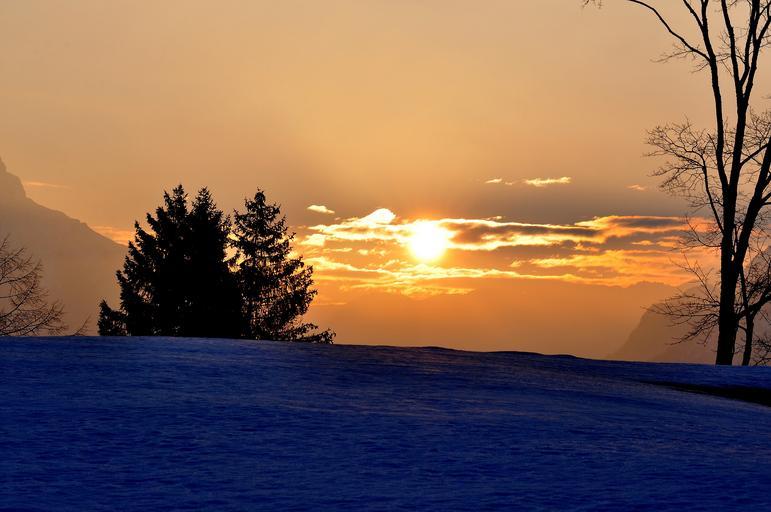 Keywords: sunrise morgenstimmung skies lighting sunlight morning landscape winter nature trees sun sky snow rest silent