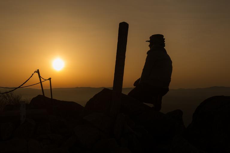 Keywords: sunrise mountain climbing mountain silhouette summit sun shadow japan flower garden fragrance