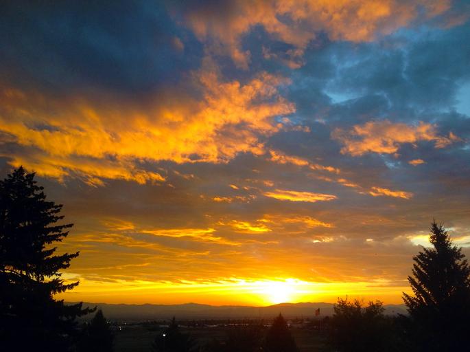 Keywords: sunrise orange blue morning landscape sky color clouds horizon